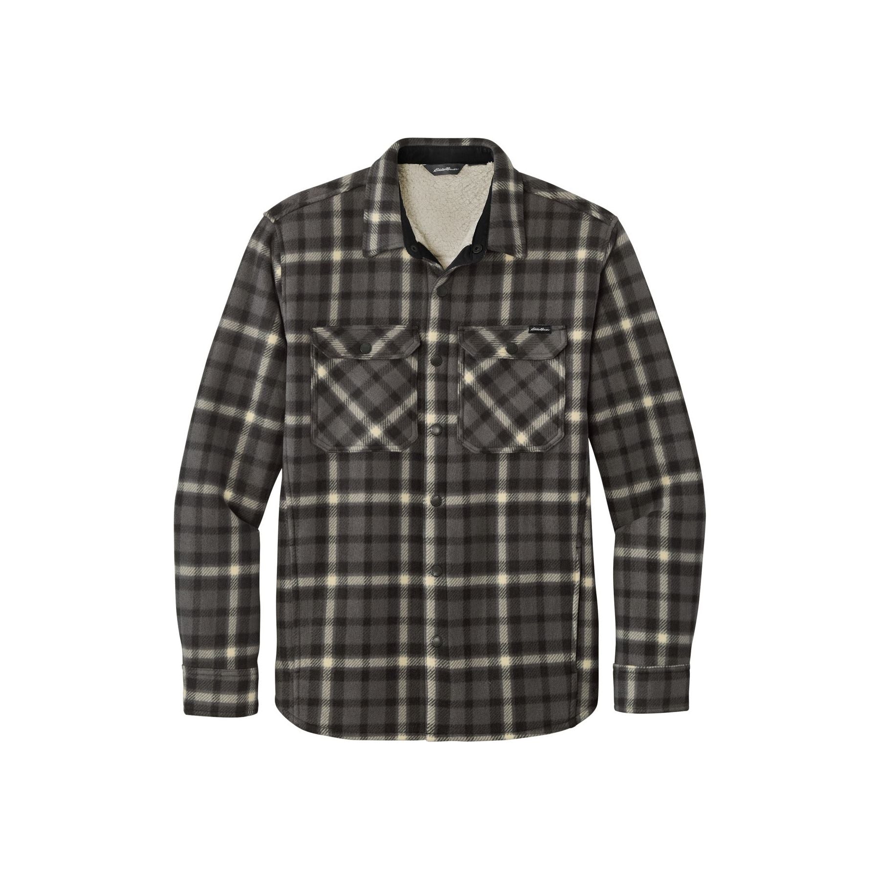 Whether you're spending time inside or outside in cool temps, the high-pile fleece interior of these rugged-looking shirt jacs will keep you warm. Eddie Bauer logo snap-front closure and snap-close chest pockets. Handwarmer pockets. Eddie Bauer woven label at left chest pocket. Made of 10.3-ounce, 100% polyester microfleece bonded with 100% polyester high-pile fleece interior. 100% polyester woven details.